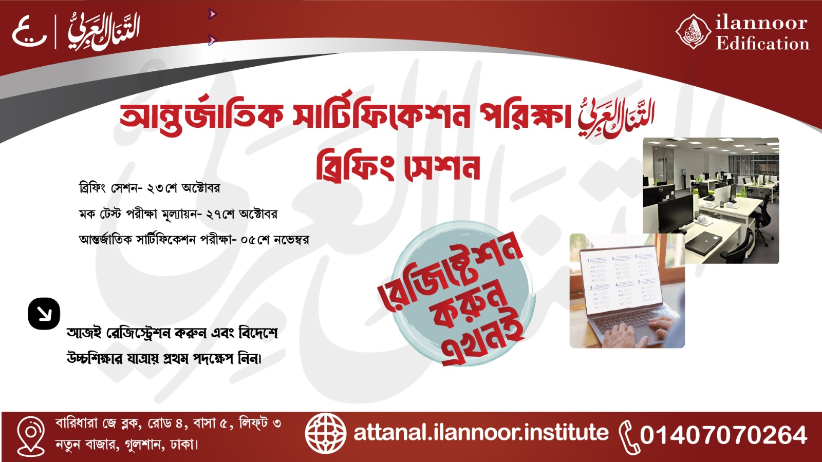 আন্তর্জাতিক সার্টিফিকেশন পরিক্ষা আত তানাল ব্রিফিং সেশন ২৩ অক্টোবর